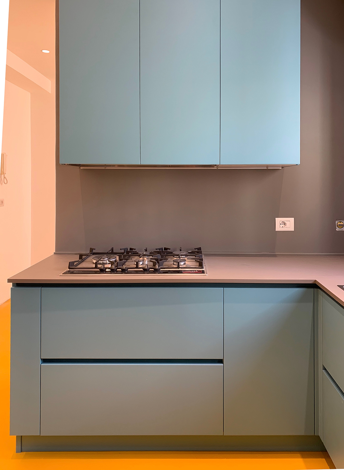 Il colore si adatta all’atmosfera della casa ed al gusto personale abbinato ai vari materiali proposti per il top: dall’acciaio, al quarzo, al gres o pietre sinterizzate.